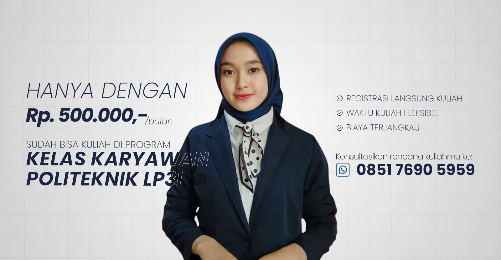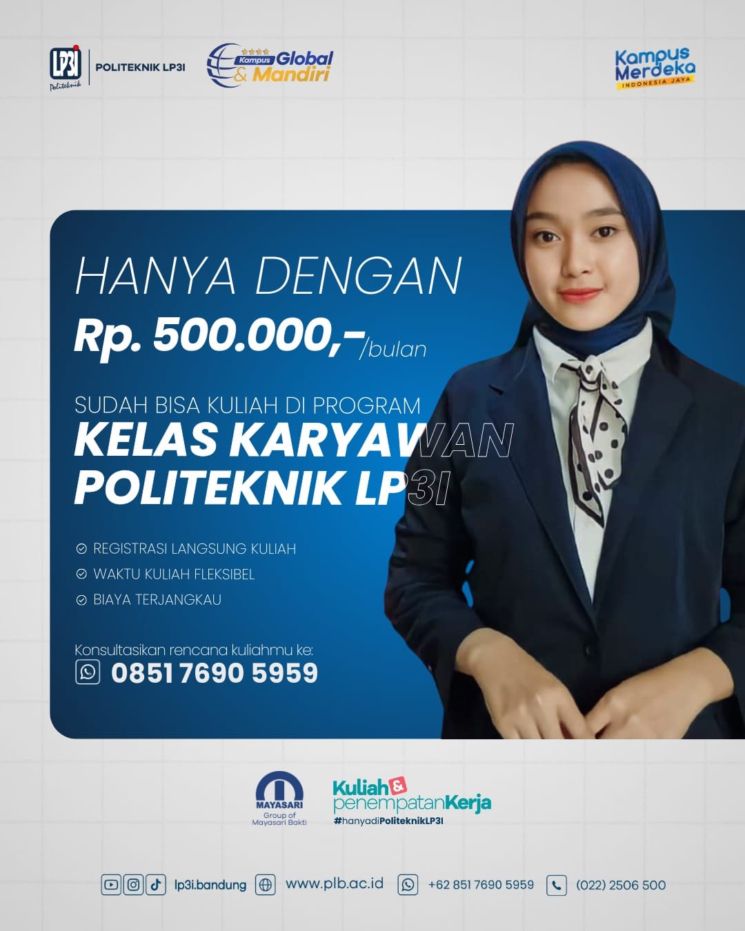 Sambil bekerja, tetap bisa kuliah untuk meraih gelar Sarjana/Diploma tanpa mengganggu waktu bekerja, waktu kuliah fleksibel, dengan biaya terjangkau.